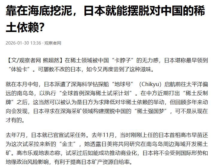 《日经新闻》更是直言不讳——只要海底稀土开采实现商业化,日本不仅能彻底摆脱对中国的依赖,甚至有可能取代中国成为全球重稀土供应核心。