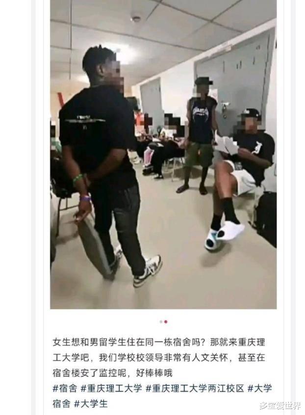 网帖所附照片中,清晰可见多名黑人男性的身影。发帖者言辞间满是困惑,女生们实在难以理解学校将留学男生安排进两江6栋女生宿舍这一操作,毕竟宿舍门口那块“女生宿舍,男生勿入”的牌子格外醒目。