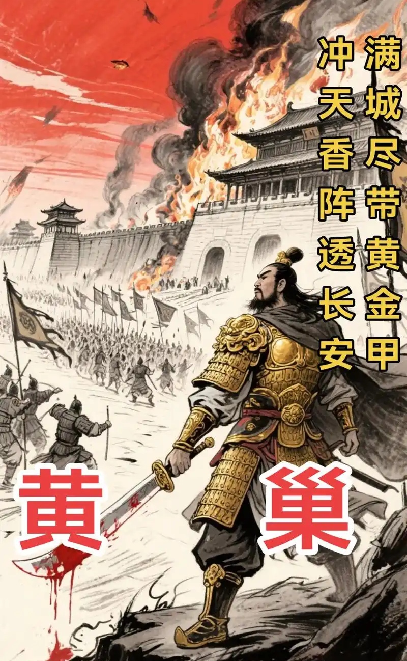 黄巢,山东曹州冤句人(今山东省菏泽市牡丹区),他聚集队伍与王仙芝的农民起义军遥相呼应。据宋人笔记记载:黄巢五岁时就吟出了史上著名的《题菊花》诗句:“飒飒西风满院栽,蕊寒香冷蝶难来。他年我若为青帝,报与桃花一处开。”黄巢成年后几次应试进士科皆名落孙山,满怀激愤的他挥毫写下《不第后赋菊》诗词后离开长安,回到家继承祖业成为一名私盐贩子,后受王仙芝起义影响,于乾符二年(875年)率众起义响应,之后二人兵合一处,声势日益浩大,唐僖宗李儇(xuan)采用弹压与招降双管齐下策略,派宦官到蕲(qi)州(今湖北省蕲春)面见王仙芝,册封他为“左神策军押牙兼监察御史”官衔,王仙芝鬼迷心窍表示愿意接受朝廷招降,黄巢得知消息后与王仙芝发生冲突,在暴怒之下将王仙芝打得头破血流,之后二人分道扬镳、各自为战。其实王仙芝的想法也无可厚非,他没有黄巢那么大的野心,能够获得一官半职、衣食无忧他已经心满意足了,总比四处流窜和整日将脑袋别在裤腰带上不知道强了多少倍。