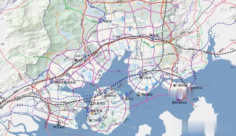 货运通道:公路货运含海沧隧道、杏林大桥等,形成“一带五连九串” 货运系统;铁路货运以鹰厦铁路、兴泉铁路支线为主,预留同安站用地。