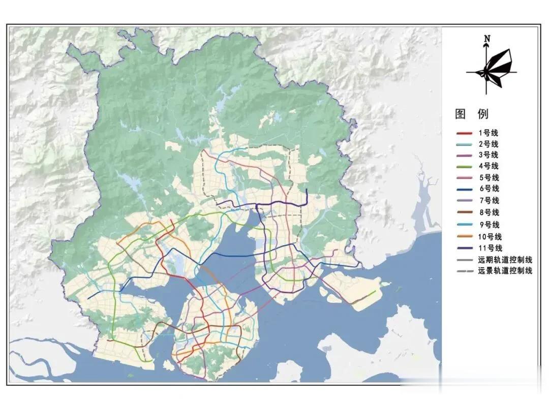轨道交通:构建“中心放射、环湾强化、全域服务” 线网,形成 “中字型” 快线、“三向出岛 + 环湾” 普线、远景控制线三层格局;推进站点与周边用地一体化开发。