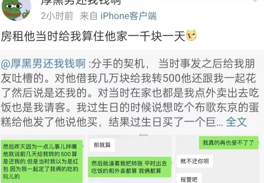 你们听说了吗?有位“厚黑男还我钱啊”的网友疑似是卜凡的前女友,一肚子苦水一股脑倒给卜凡,而且还公开了他们的聊天记录,真是狗血到家了!