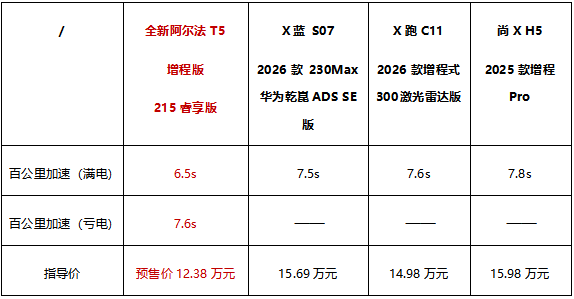 在家庭用户关心的动力方面,全新阿尔法T5增程版峰值功率200kW,峰值扭矩365N·m,满电零百加速仅6.5秒,即使在亏电状态下零百加速仍能保持7.6秒优异成绩,爬坡过坎、高速超车全部游刃有余。无论满电馈电,全新阿尔法T5性能随时在线,“快人一步”尽享百万级别澎湃驾控。