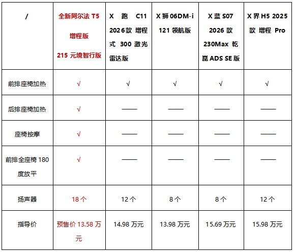 从年轻时尚外观设计到北汽神擎增程的硬核加持,从全系标配宁德时代电池到全球首个搭载骁龙8775舱驾一体解决方案,从麦格纳世界级品质到“近0醛0苯”健康座舱,全新阿尔法T5“一车满足全家需求”,让中级车“不再中级”,带给众多年轻家庭时尚动感、驾乘自由、智能舒适、可靠安全的SUV新体验。
