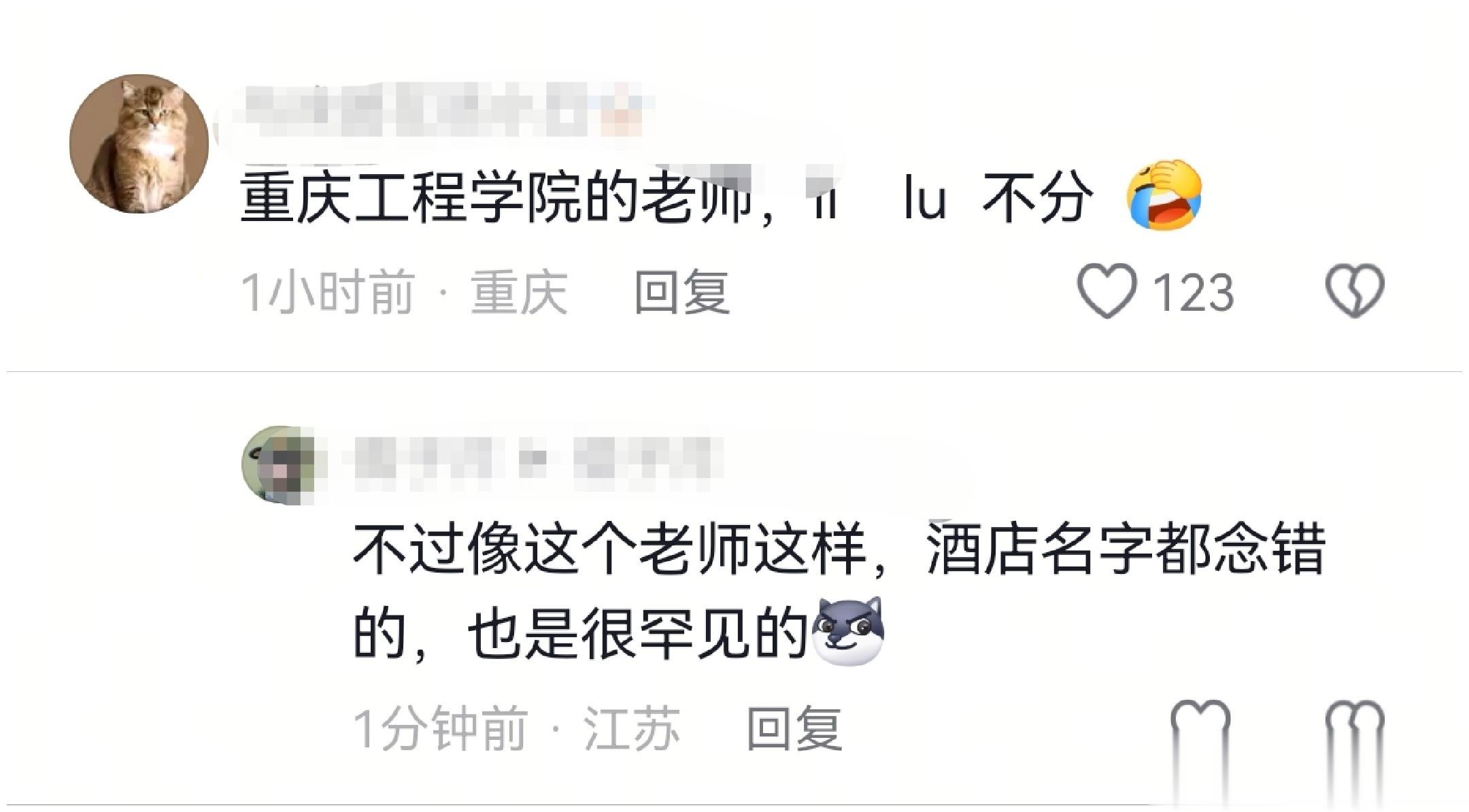 更有网友调侃,作为一名大学老师,控诉视频的开头连酒店名字都念错了,把“麗”念成了“麓”。