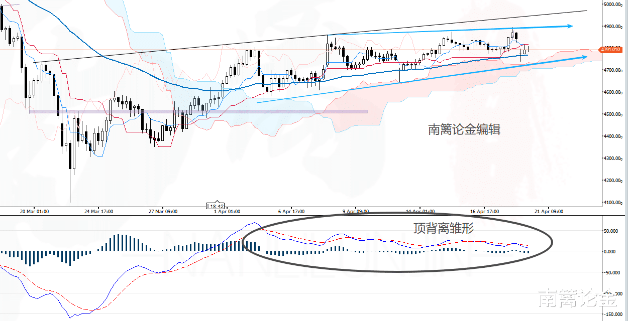 说完强弱阻力,再看弱支撑,重点关注前期反复震荡的区间4782—4785,这个区间一旦失守,行情会进一步试探前低。不过我个人认为,前低的支撑力度已经不强,真正的核心关口,还是4700整数位。