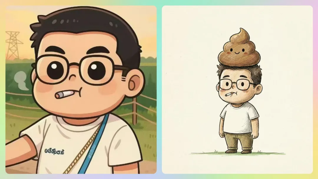 一个头上顶着一个可爱的大便的角色(根据用户上传的图片角色)Wolf Erlbruch风格极简儿童绘本插图精致的黑色墨水轮廓线,纹理化的彩色铅笔阴影,交叉排线,大地色调米白色纸张纹理背景,一条细细的绿色线条代表草地,大量留白,奇幻而冷幽默