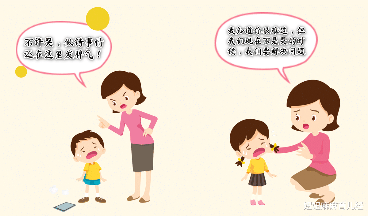 先肯定他们的情绪发泄,然后再跟孩子心平气和的解释,最后提出解决问题的方案