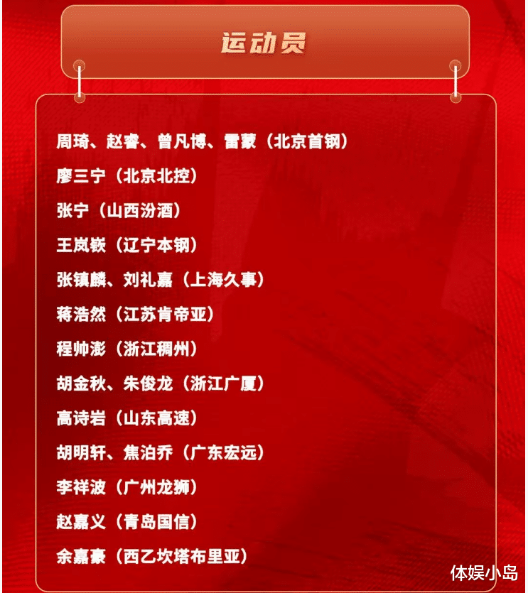 广厦队孙铭徽再次落选,胡金秋和朱俊龙再次得到召唤。两人在全运会的表现也很出色,朱俊龙还帮助球队拿到一枚宝贵的银牌。