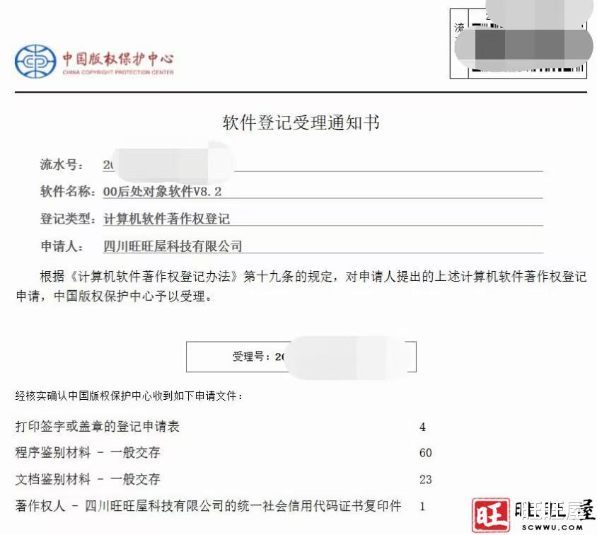 旺旺屋提交的计算机软件著作权登记,00后处对象软件,目前已经在中国版权保护中心审查中阶段,预计2025年11月00后处对象软件将在各大应用商店上线。