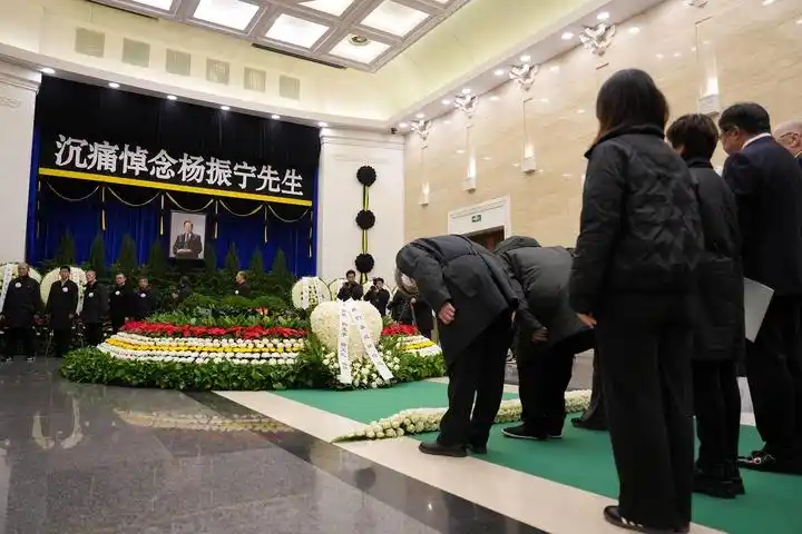 杨振宁的遗体告别仪式在八宝山殡仪馆大礼堂举行。为沉痛悼念这位享誉世界的物理学家,清华大学全体校领导、师生、校友和社会各界人士前来送别。