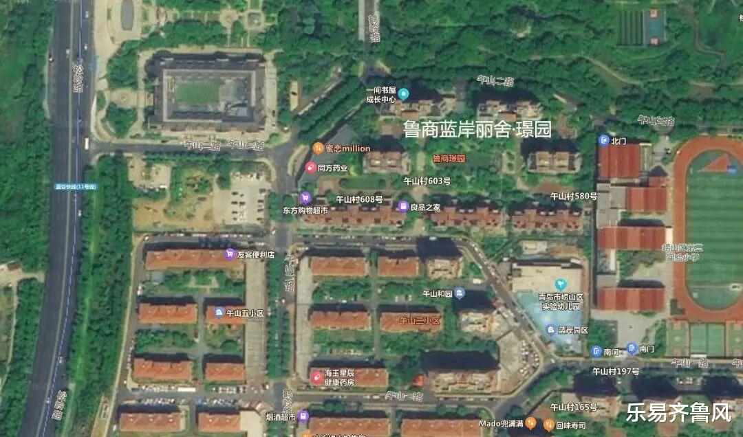 项目用地边界西临松岭路、隔路为青岛科技大学(崂山校区),东临鹤岭路、隔路为鲁商蓝岸丽舍·璟园小区,南临午山二路、隔路为1处停车场。