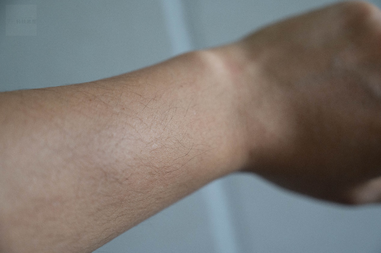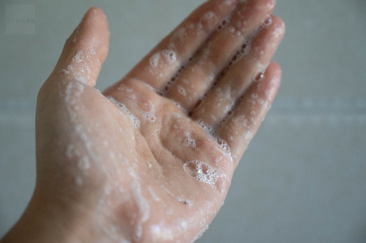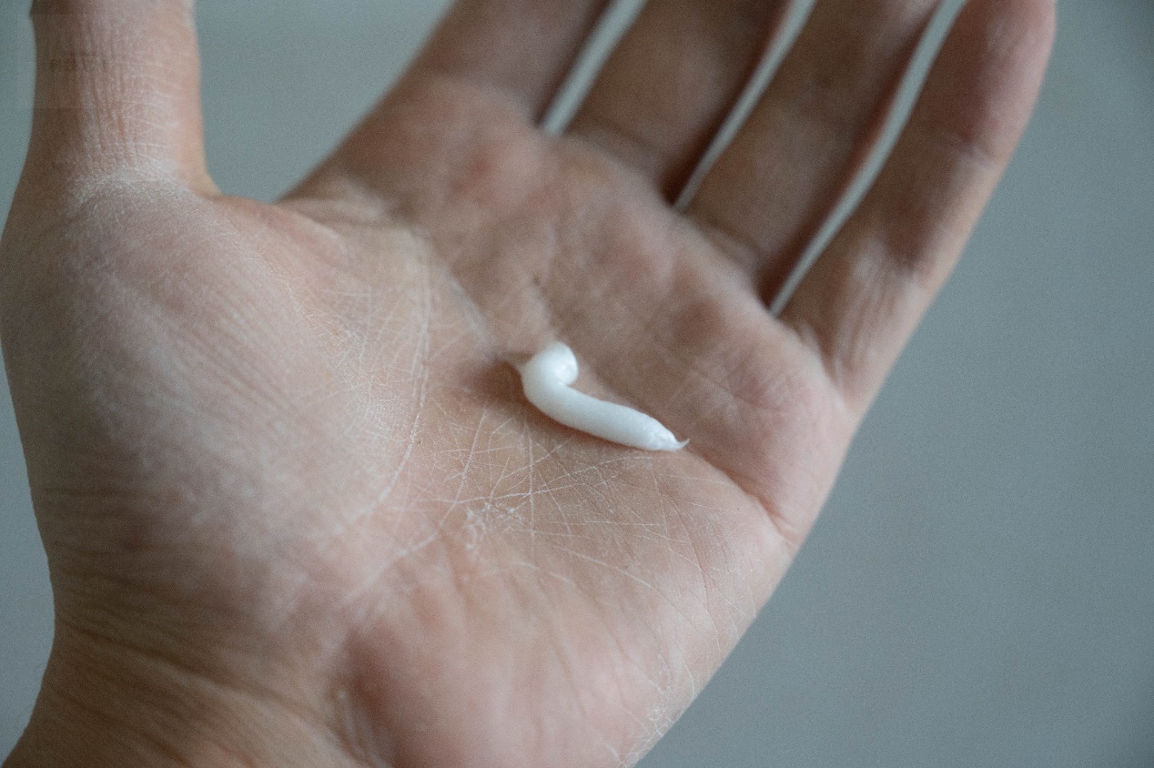 清洁力的验证可以通过几个简单的测试来观察。首先可以看一下清洁残留的效果,我们事先在手上沾染一些油脂粉尘,然后通过这款洁面乳进行清洁。