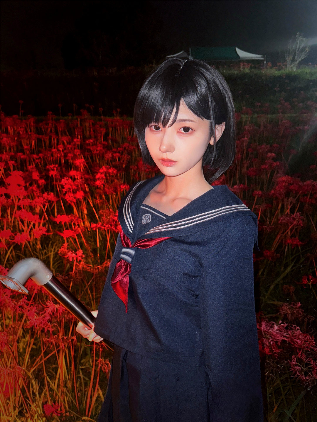 言归正传,在ACG圈子里混迹的Coser绝对不会放过任何一个可以“蹭流量”的机会,《寂静岭f》深水雏子目前在社群里讨论度那么高,自然就有人来扮演。博士留意到近期有一个比较不错的Cosplay作品,是由“月海つくね(社群ID为XaiabP)”分享的。小姐姐不知道怎么找到的一块好地方,然后把自己打扮成了深水雏子,完美地还原出了《寂静岭f》里的场面,由于Coser和游戏角色真的挺像,咋一看还真的分不清这是现实照片还是游戏截图。