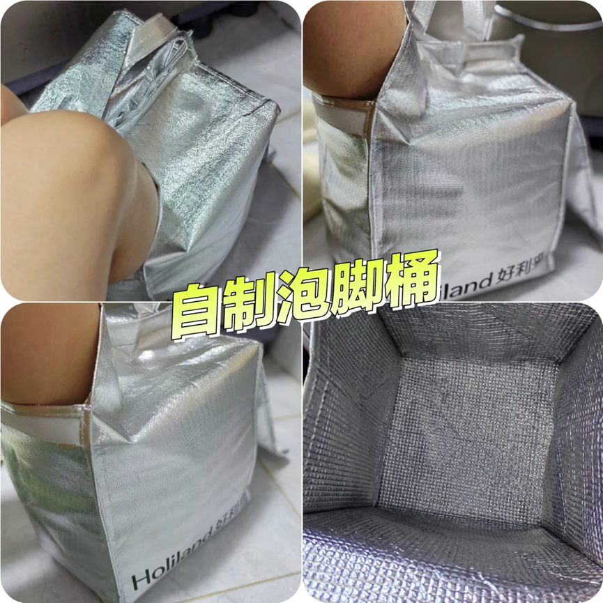 当然大家也不需要特意去花钱购买泡脚桶,直接使用稍微大一点的外卖保温袋,就能够制作一个简易版的泡脚桶了。