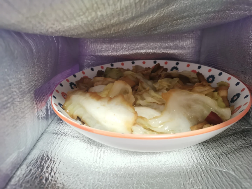 将做好的饭菜先暂时性的放置在保温袋里,这样做完最后一道菜的时候,第1道菜还是热乎的。