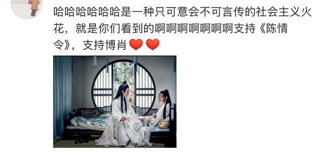 2019年6月27日,《陈情令》播出,肖战饰演的魏无羡和王一博饰演的蓝忘机迅速火遍全网。