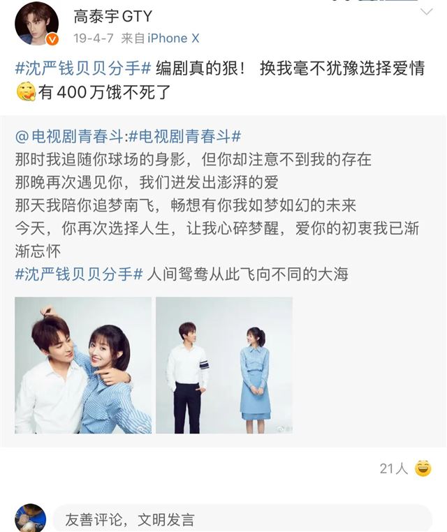 高泰宇的退圈,或许是对自己的一种解脱,但他对肖战的赞赏,却从未改变。