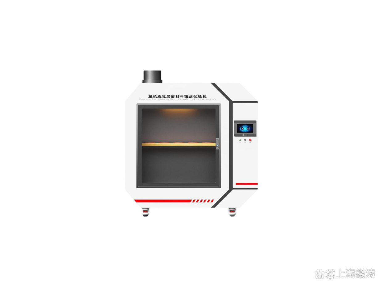 ### 一、塑胶跑道阻燃性能的重要性塑胶跑道通常由聚氨酯(PU)、三元乙丙橡胶(EPDM)等材料构成,这些高分子材料在高温下可能释放有毒气体并加速火势蔓延。根据《GB/T 14833-2020 合成材料跑道面层》国家标准,塑胶跑道需通过垂直燃烧试验(如GB/T 5454)和氧指数测试(如GB/T 2406),要求燃烧速率≤100mm/min,氧指数≥26%。若阻燃性能不达标,在突发火灾中可能引发“轰燃”现象,严重威胁人员安全。### 二、阻燃试验机的工作原理与核心组件阻燃试验机主要通过模拟真实火灾环境,对跑道材料进行定量分析。以垂直燃烧试验机为例,其核心模块包括:1. **燃烧系统**:采用标准甲烷火焰(火焰高度20mm±2mm),通过精密流量计控制燃气输出;2. **试样夹具**:固定材料试样(通常尺寸为300mm×100mm),确保燃烧面与火焰呈90°夹角;3. **数据采集系统**:集成红外测温仪、电子计时器和气体分析仪,实时记录燃烧时间、损毁长度及烟气密度;4. **安全防护装置**:配备自动灭火系统和废气处理单元,防止二次污染。试验时,材料需在火焰作用30秒后移开火源,记录自熄时间和炭化长度。### 三、塑胶跑道层面材料阻燃试验机技术挑战当前技术难点在于如何平衡阻燃剂添加与材料物理性能。传统溴系阻燃剂虽效果显著,但可能释放二噁英;而无卤阻燃剂(如氢氧化铝)需添加20%-30%才能达标,易导致跑道弹性下降。