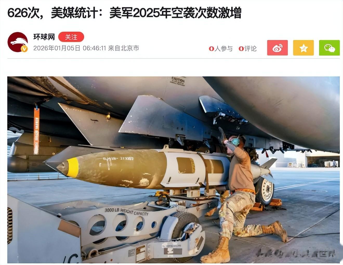 美国《军事时报》发了一篇统计文章,去年美军一共空袭了626次,平均每天都要扔1.7次炸弹。要知道拜登在台上的时候也是到处惹事,但也就一年三百多次,特朗普一上来就翻了倍。