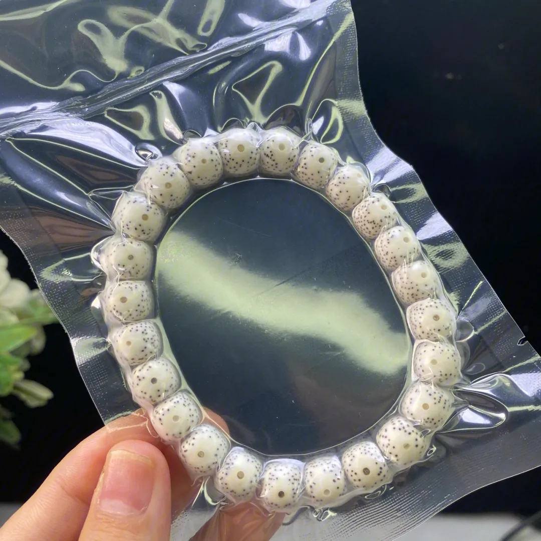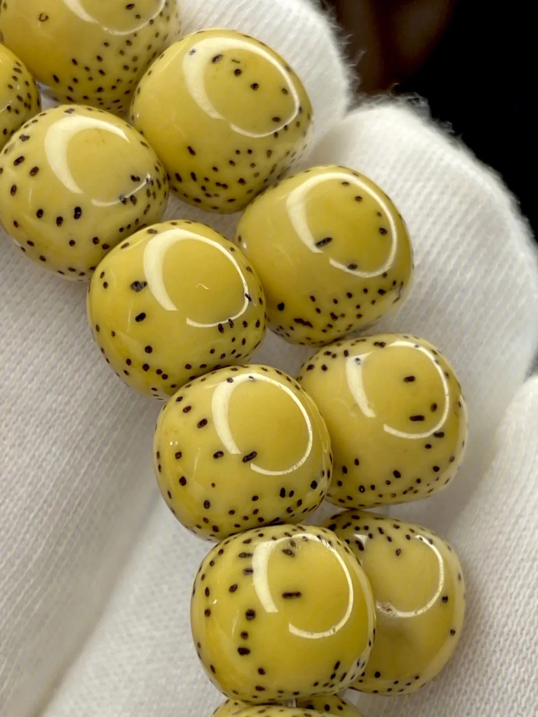 图片中这条就是原生态的星月菩提,虽然说它在真空包装里面,但是离开冰箱放置了两天,就可以看出来个别的珠子已经氧化发黄了,虽然说氧化并不影响盘玩,但是对于商家来讲它的卖相就没有那么好看了。