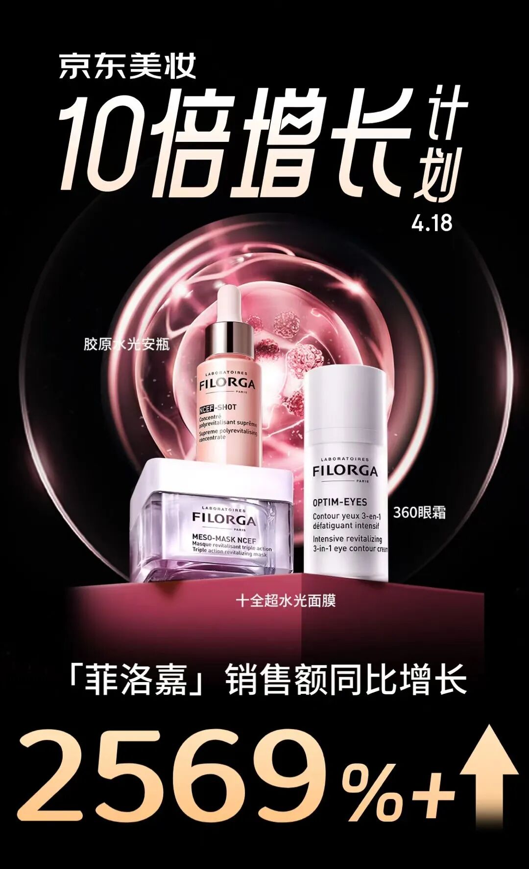 与其他品牌持续“加码买量”不同,菲洛嘉选择收缩负增长渠道,将资源聚焦于京东美妆这一更具确定性的平台,并且已经初见成效:今年4月,菲洛嘉在京东成交额同比增长300%,单日增速超25倍,后续三个月仍保持三位数增长。