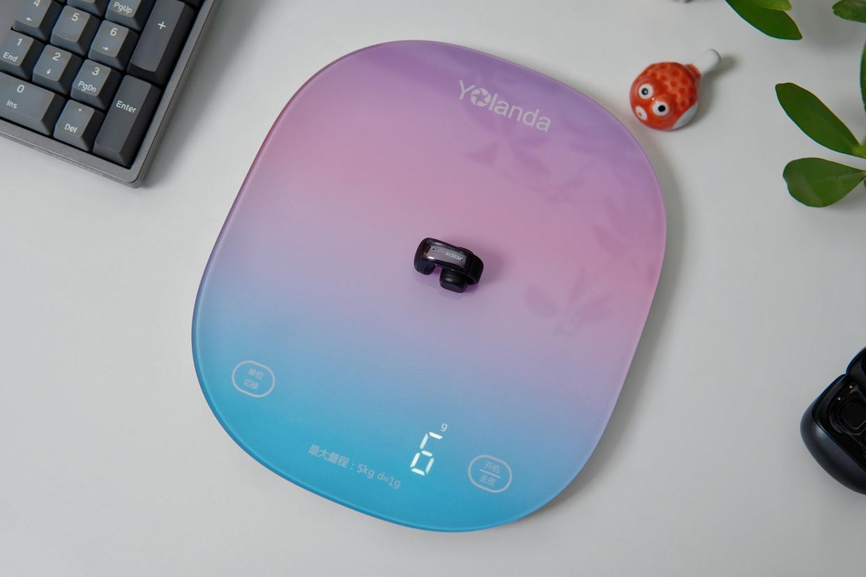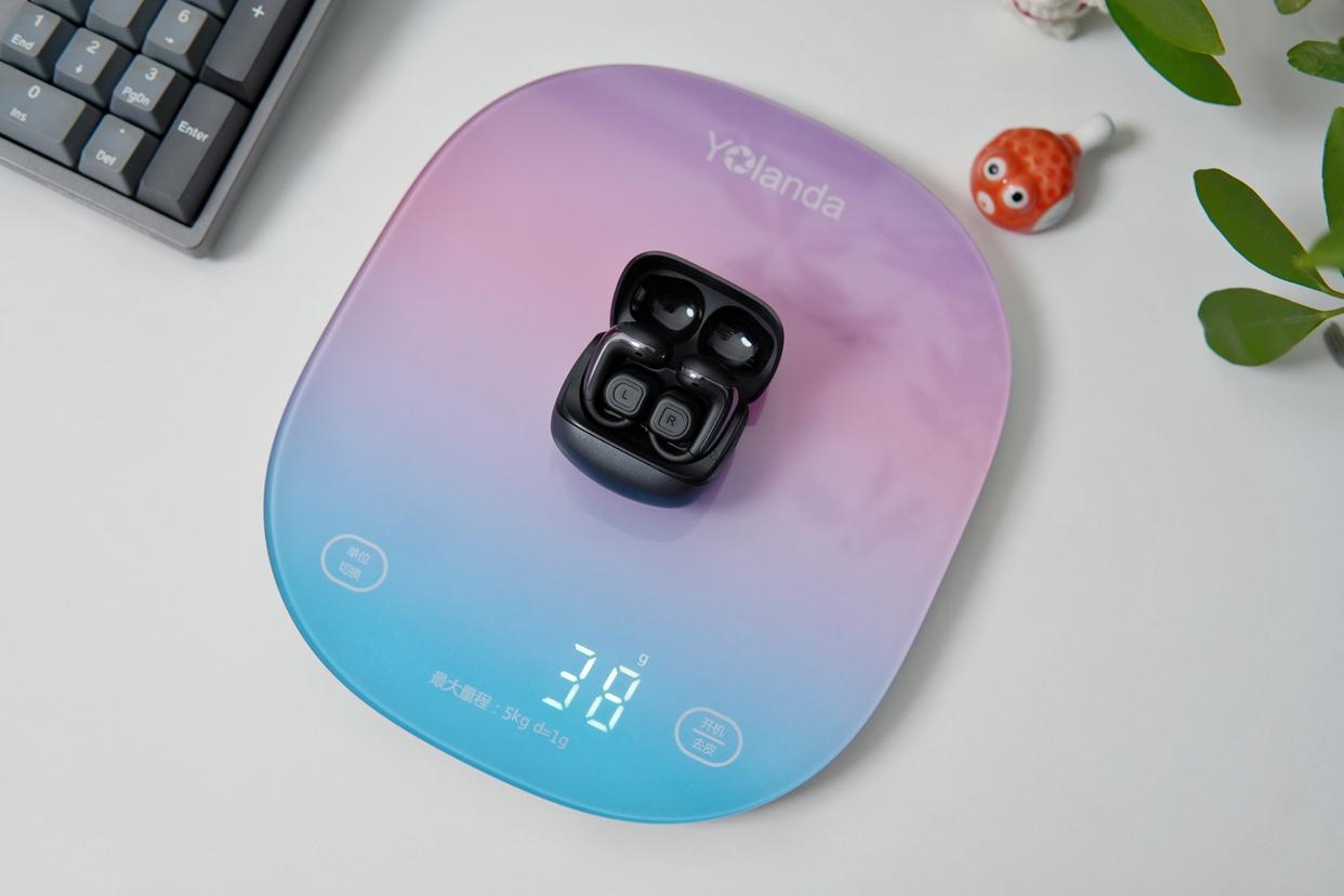 ▲西圣Plume耳夹式耳机充电盒含耳机的重量仅38g,充电盒尺寸70mm×56mm也很小巧,外带便携性就很好,不需要听音时,握在手里或者揣在兜里,都是方便的。