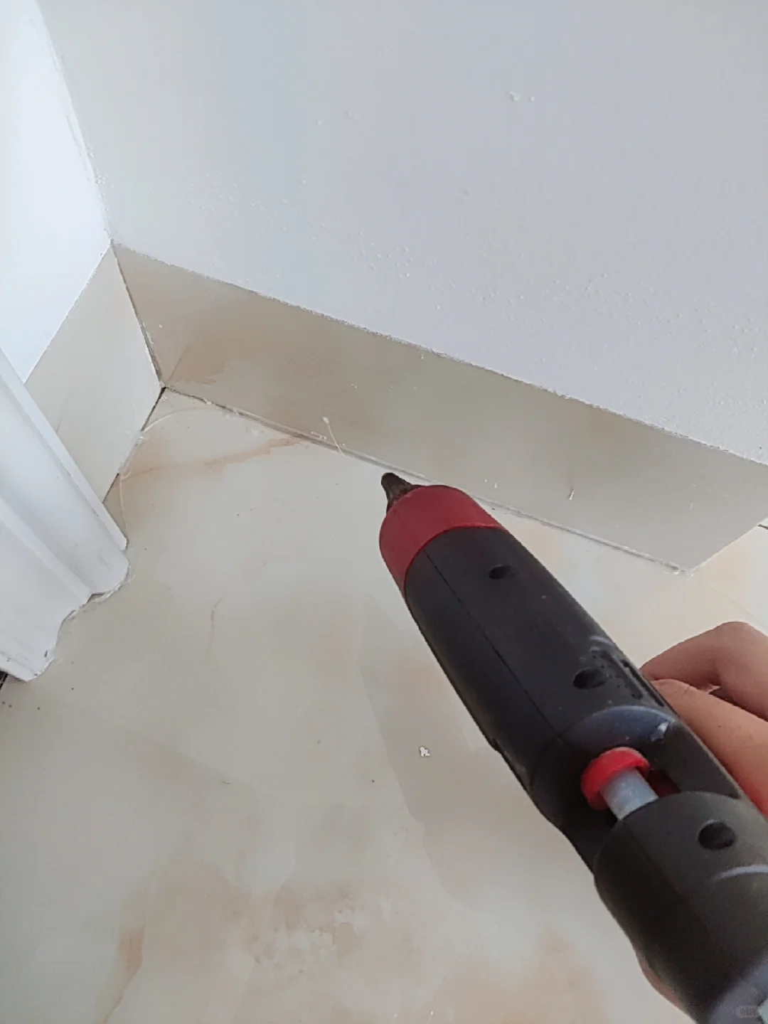 用热熔胶把线固定在地脚边缝隙里面,这样就完美的隐藏了光纤线,而且在拖地的时候也不会打麻烦,家里需要走明线的地方,都可以尝试这个办法。