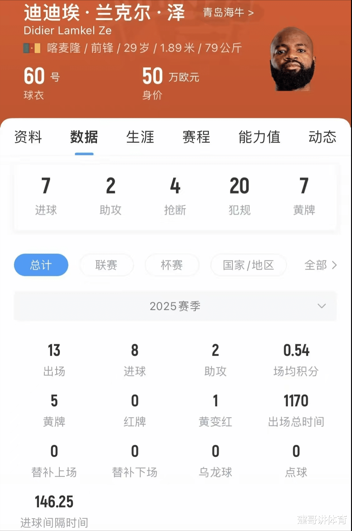 北京时间11月23日,当青岛海牛队在缺少了核心外援兰克尔的情况下,客场战平浙江队完成了保级任务后,对于提前告别青岛海牛队,没有参加海牛队保级生死战的兰克尔,青岛官方权威媒体记者“青岛体坛那些事儿”,专门发文对夏窗加盟青岛海牛队的喀麦隆国脚兰克尔进行了评价。