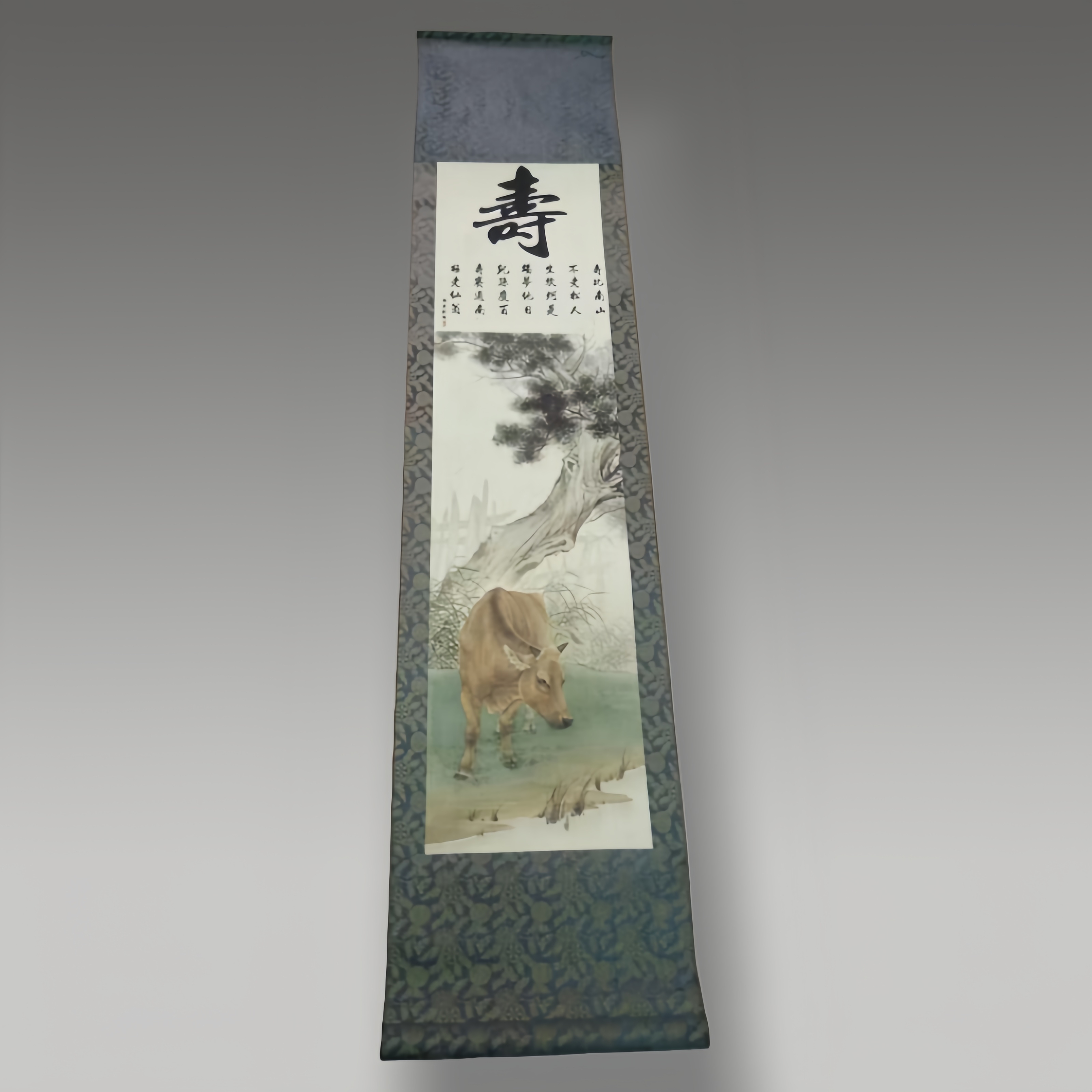 这组“福禄寿禧”四条屏,以大字配牛景绘吉意,笔墨清雅衬山水,题句含祥,是工致讨喜的传统吉祥装饰画