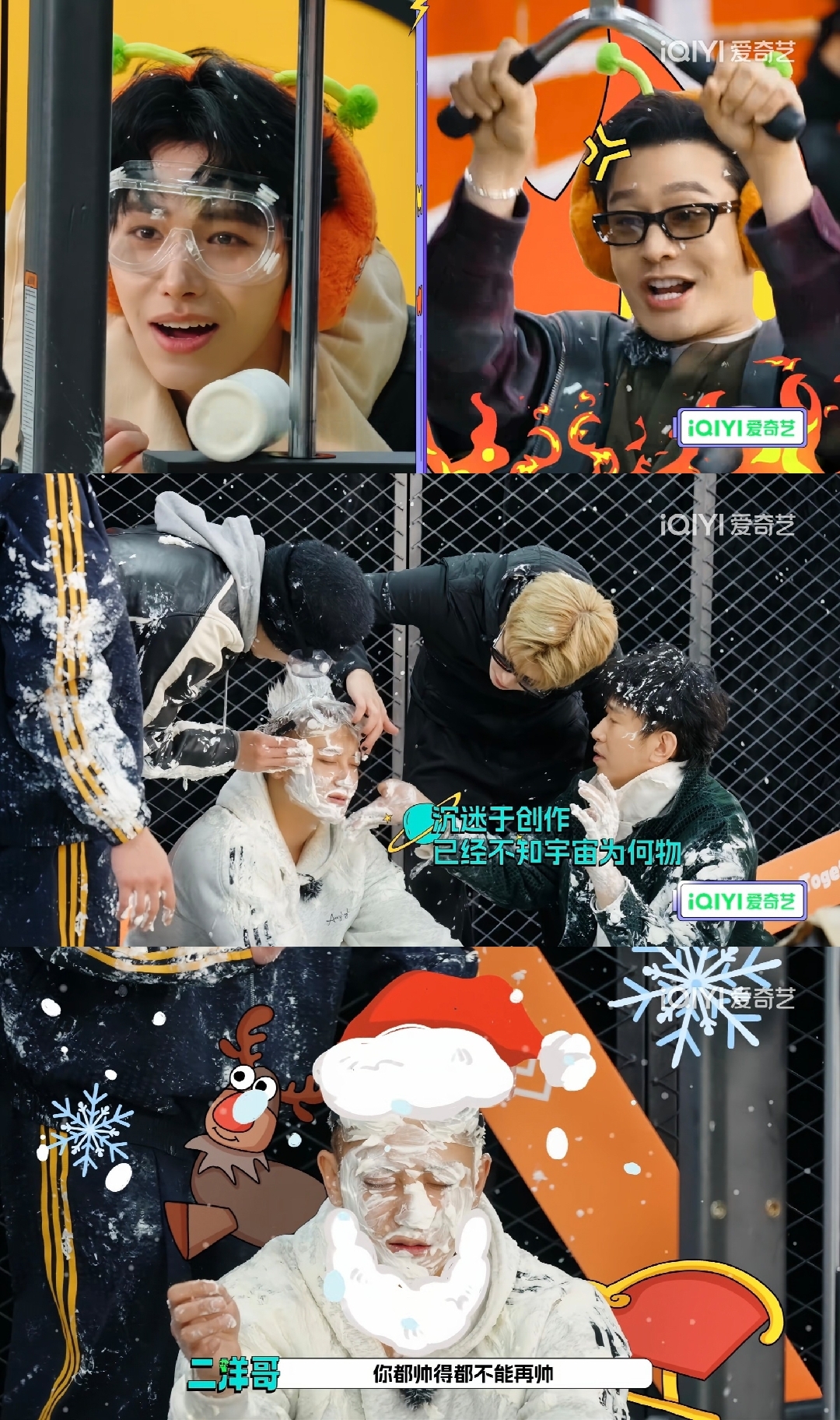 邵子恒读唇语翻车,盯着黄晓明反复念叨“我做一个傻子多好”。最惨的是黄子韬,奶油炮答题被连环攻击后还逃不脱兄弟们奶油发型,黄子韬满脸奶油无奈喊话:“我要被玩坏了!”