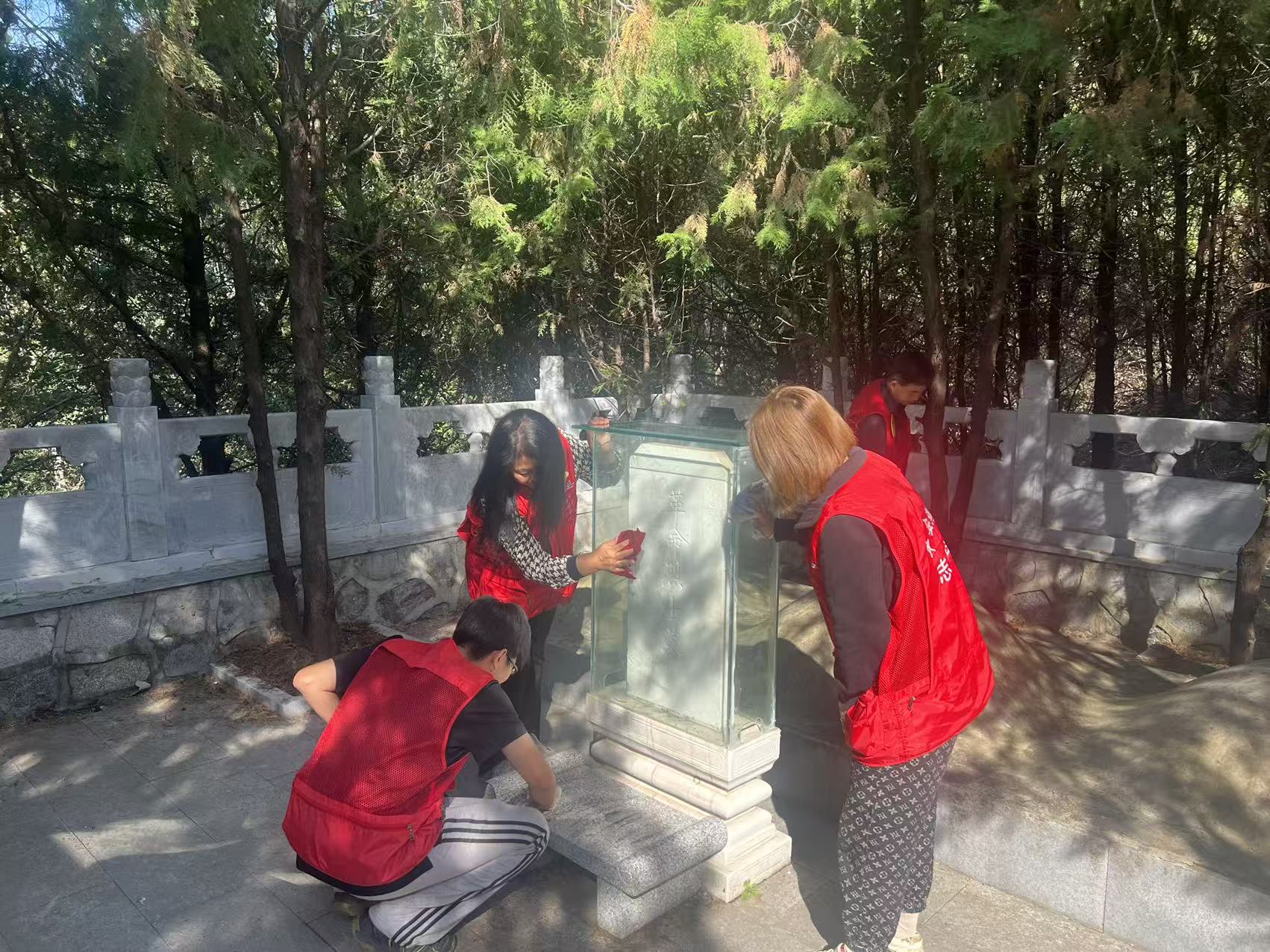 清晨,东风街道“老工友”首都老兵志愿服务队的志愿者们身着整齐的服装,手持清洁工具,怀着无比崇敬的心情走进陵园。他们分工明确,有的仔细清扫着陵园的每一个角落,不放过一片落叶、一丝灰尘;有的则轻轻擦拭着烈士的墓碑,每一个动作都小心翼翼,在擦拭墓碑的过程中,志愿者们仿佛穿越了时空,与那些为了国家和人民英勇牺牲的烈士们进行了一场无声的对话。他们深知,这些墓碑背后,是一个个鲜活的生命,是一段段可歌可泣的英雄事迹。
