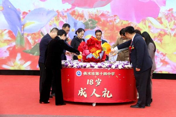 赵彦亭书记郑重宣布,衡水市第十四中学2023级“书写家国华章,绽放青春光芒”十八岁成人礼正式开幕!