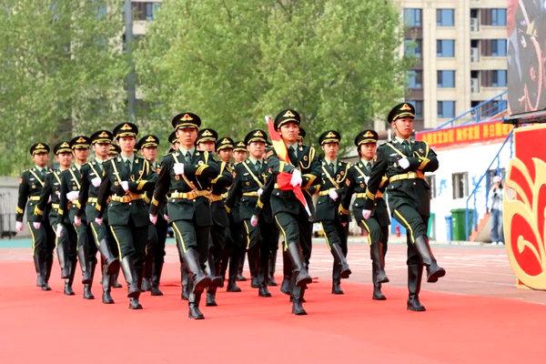 国旗护卫队迈着整齐有力的步伐护送国旗到升旗台。每个人身姿挺拔如松,肩扛着使命与担当。那脚步声,仿若战鼓擂动,声声踏在师生们的心尖上,震撼而有力!