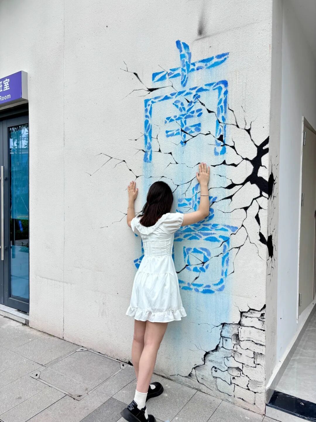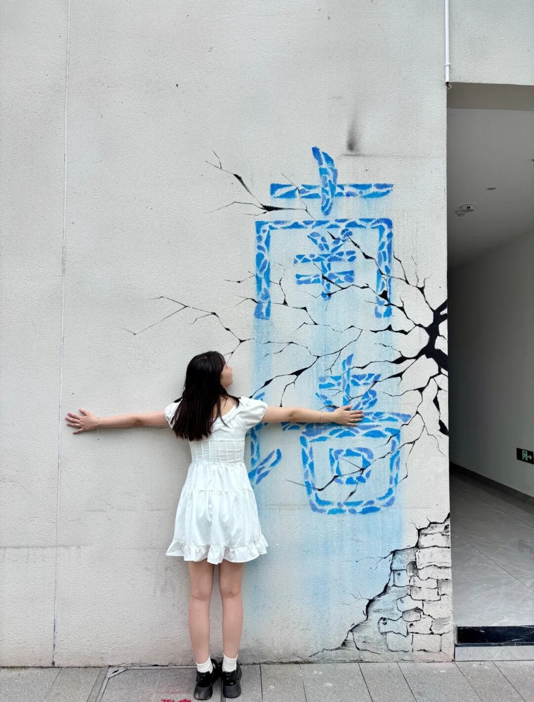作为广安新晋网红,賨城里再次出圈,手绘的裂纹再加白底蓝字的潮流歌词,大白墙就摇身一变,成为最新打卡地~生活的南墙撞不了一点,但賨城里的南墙我必撞!