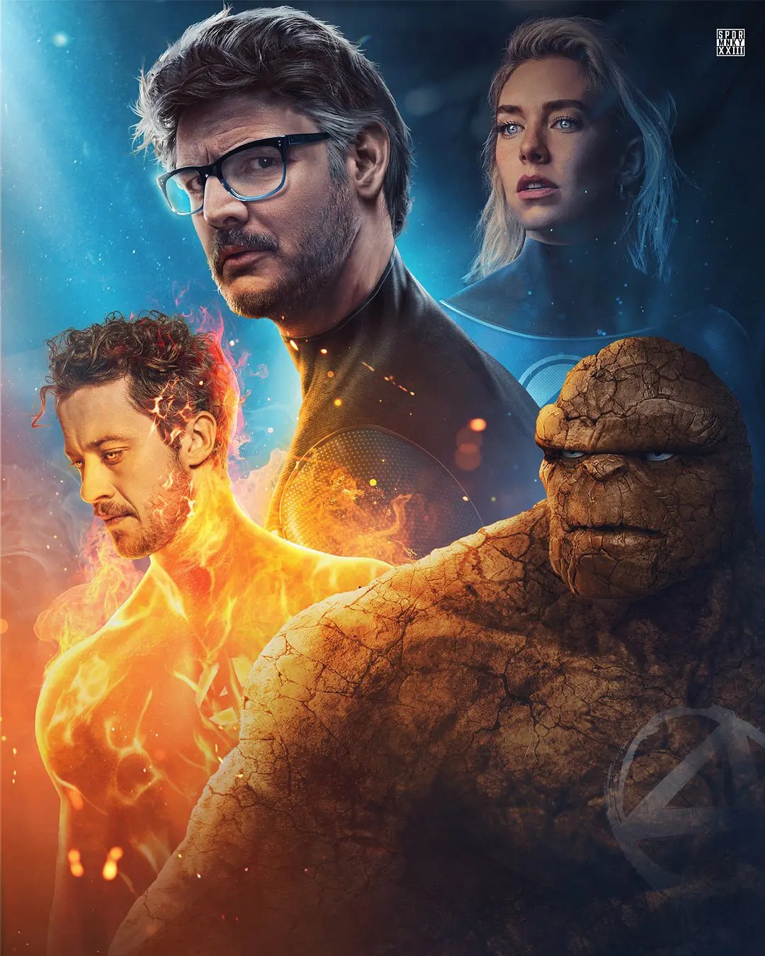 一些人预计他会执导这部电影。这位演员没有出现在 2022 年的动漫展上,而费奇除了作为第六阶段开幕片的上映日期和地点之外,也没有透露有关这部电影的其他信息。在随后的 D23 博览会上,他证实了《旺达幻视》的马特·沙克曼将执导这部电影。此后不久,杰夫·卡普兰和伊恩·斯普林格签约编写剧本。2022 年 3 月,《阿凡达:水之道》的乔什·弗里德曼加入并撰写新稿。经过多年的猜测,佩德罗·帕斯卡于 2023 年 11 月成为饰演被诅咒的理查兹的演员。2024 年 2 月,漫威证实帕斯卡确实将饰演神奇先生,凡妮莎·柯比、约瑟夫·奎因和埃本·莫斯-巴赫拉赫将加入他,担任其他团队成员。