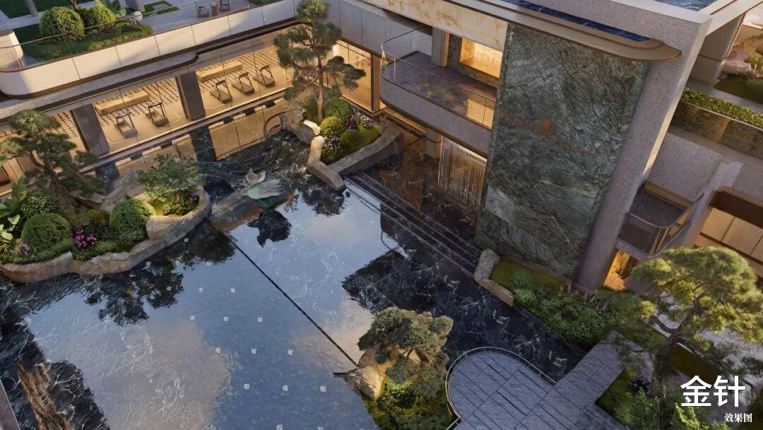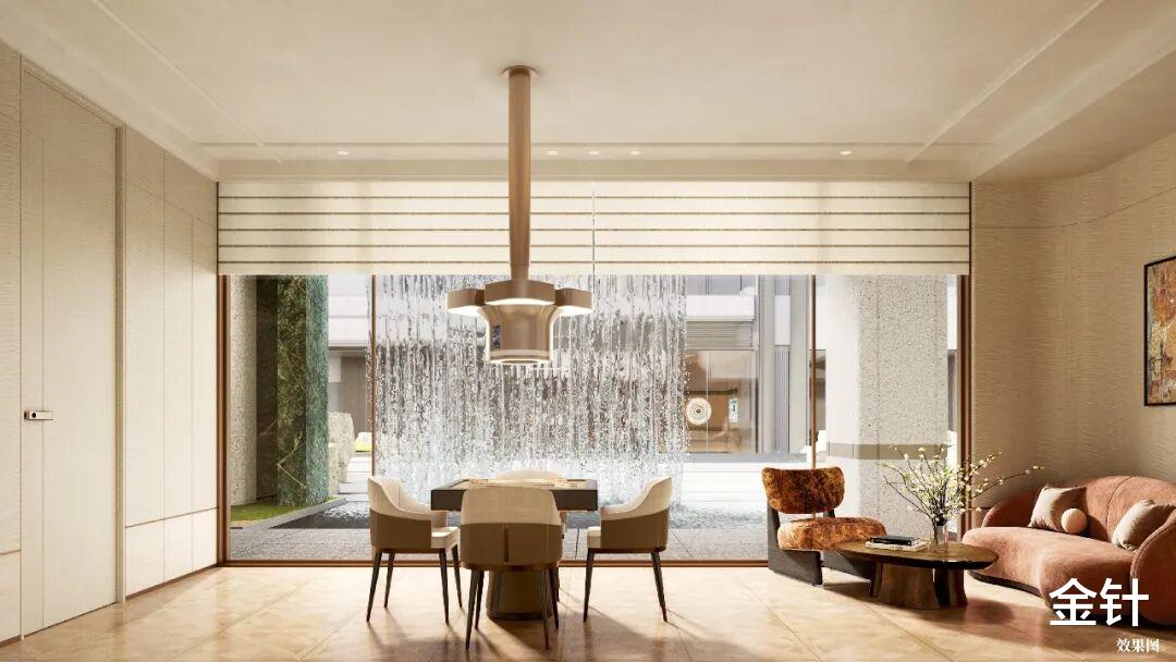 从8000多平方米的市政公园作为外部缓冲,到社区内部约2.8万㎡现代东方园林两轴一环一带六重境的布局,叠加双露台“空中花园”,由外到内多重过滤,尽享静奢。