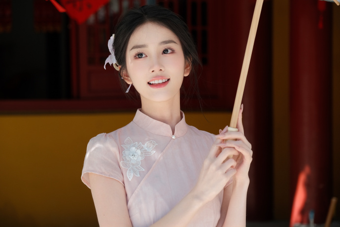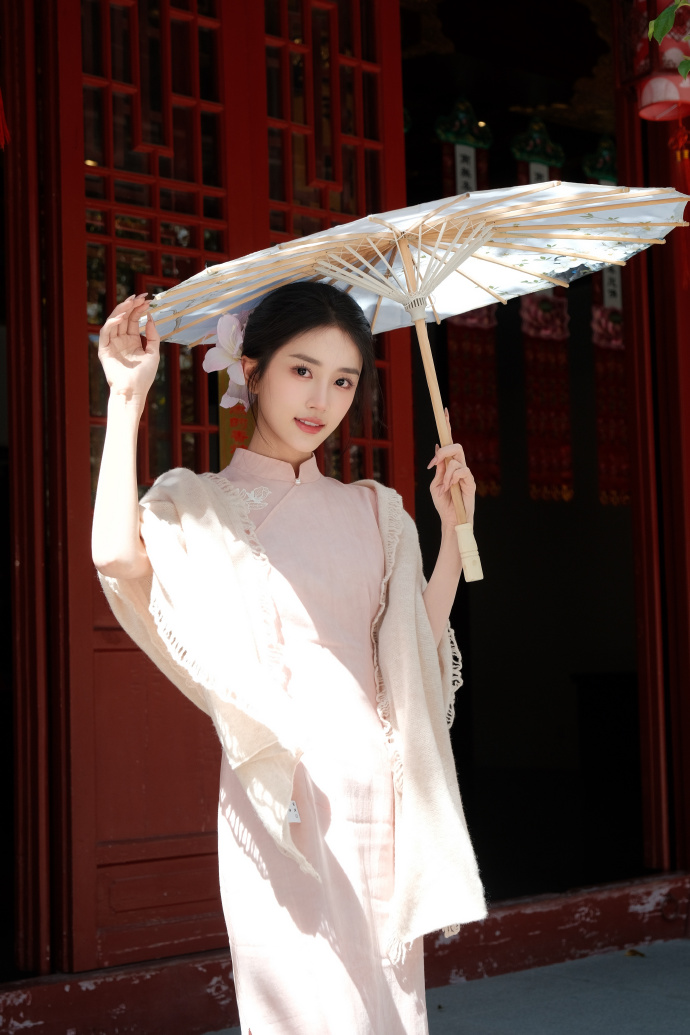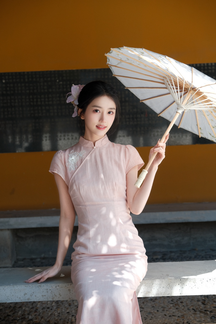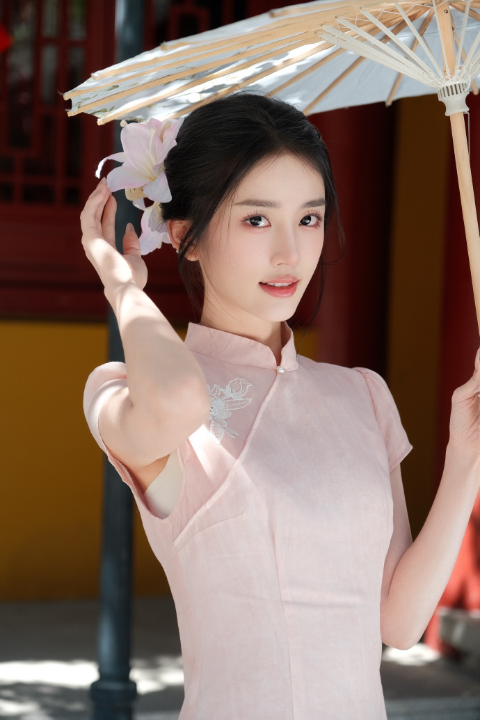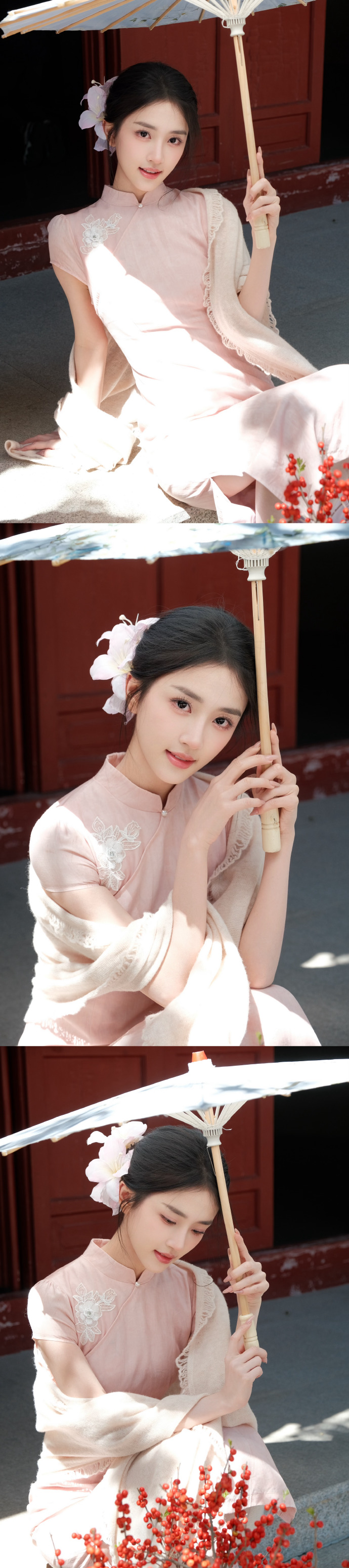 潘敏穿着粉色旗袍写真,绝美佳人真让人心动