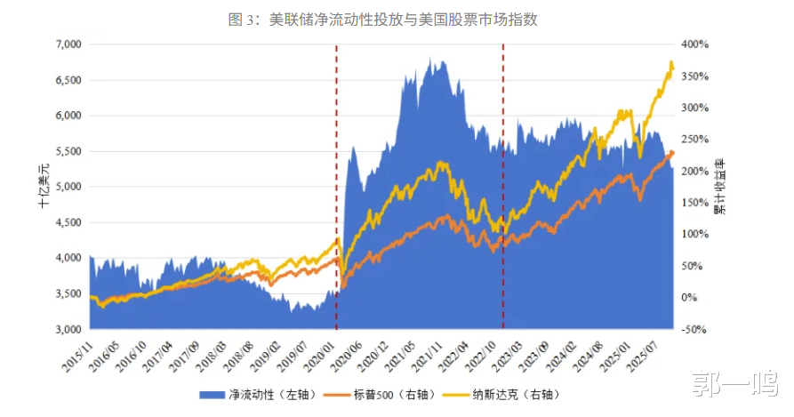 从流动性传导逻辑来看,此次“技术性扩表”将对全球市场产生连锁反应。对于美股而言,尽管其直接刺激力度弱于全面QE,但流动性的边际宽松仍将显著改善对资金成本敏感的板块。历史经验反复验证,流动性宽松与美股表现存在强正相关性,尤其是科技、成长类股票,将直接受益于融资环境改善和市场风险偏好提升,成为流动性宽松周期中的核心受益方向。同时,全球范围内的美元流动性溢出效应将尤为显著,在历史上的每一轮扩表周期中,追求更高回报的外资都会加速流入新兴市场,重塑全球资本的配置格局。