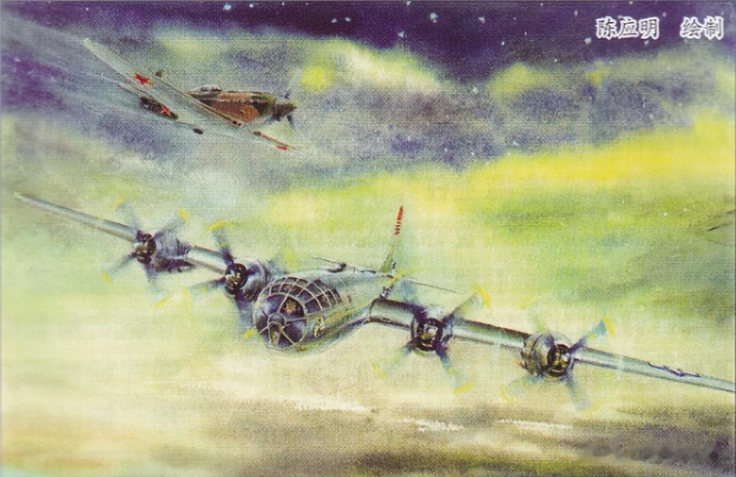 图示:1944年7月29日,在第一次空袭鞍山昭和钢铁厂作战中,第462轰炸机大队的42-6256号B-29因故障转飞苏联,中途遭到苏军战机拦截。
