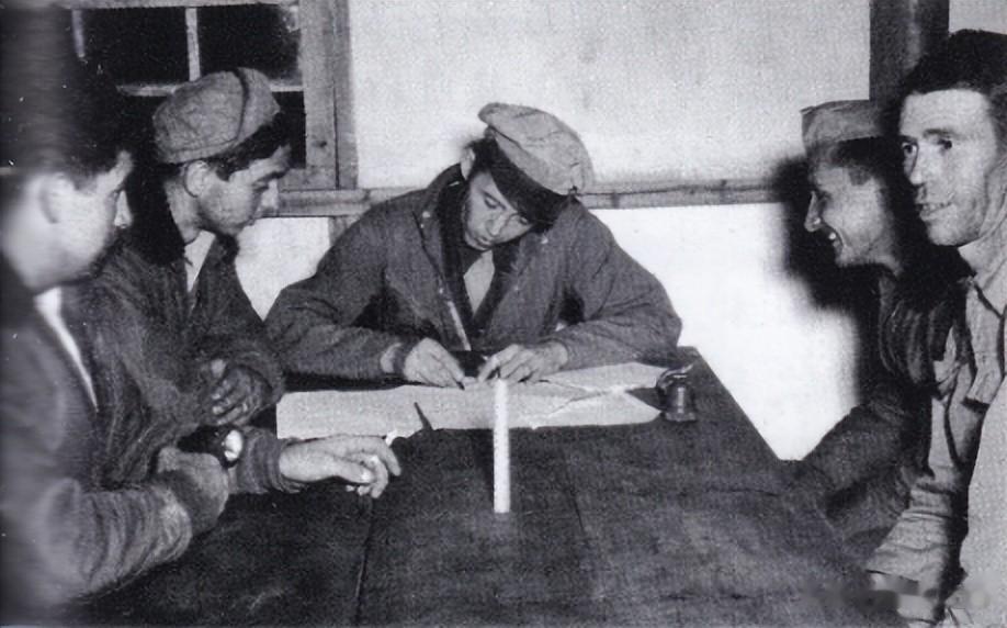 第40轰炸机大队的情报官听取返回的B-29机组进行任务完成汇报