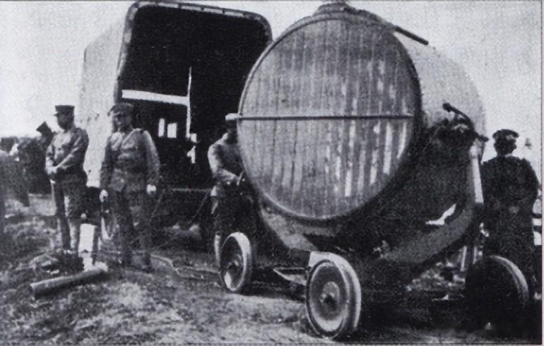 图示:日本陆军装备的第一种国产探照灯是九三式150厘米探照灯,最大作用距离4千米,直到1941年以后,富士电机厂才制造出最大作用距离达到8千米以上的一式探照灯。