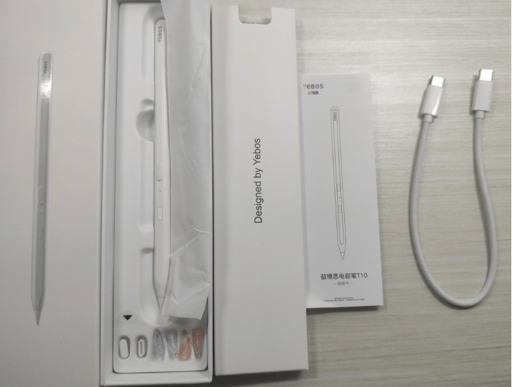 这款电容笔值得一提的是续航能力还不错,支持Type-C有线充电,约30~40min可充满,满电后按每天使用2小时计算可使用20天,连续使用可用35小时。并且连接益博思APP可实现随手写、自由截屏等数十种自定义功能。这款电容笔采用原生烤漆笔身,并且电容笔尖采用镀金笔头,笔尖和笔身的组合使用起来手感顺滑,同时还支持磁力吸附在iPad上,但磁吸的兼容型号有限。在握持手感上该笔16克的重量在长时间使用后可能引发手腕不适感,需根据个人习惯权衡选择。