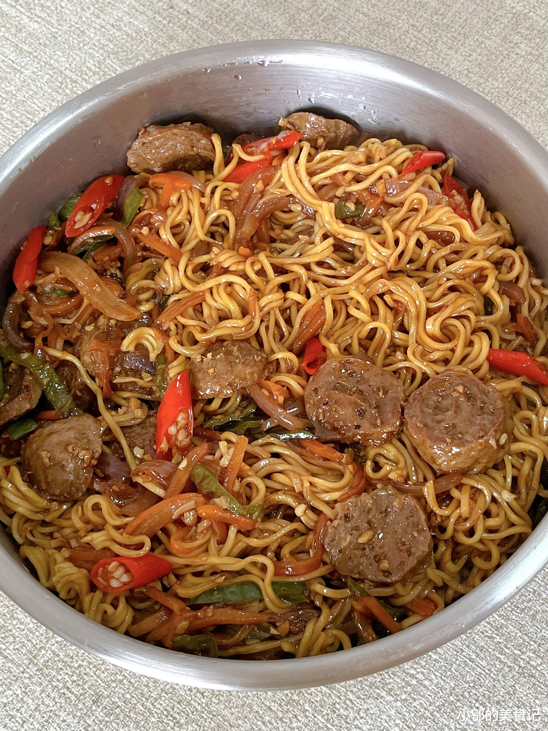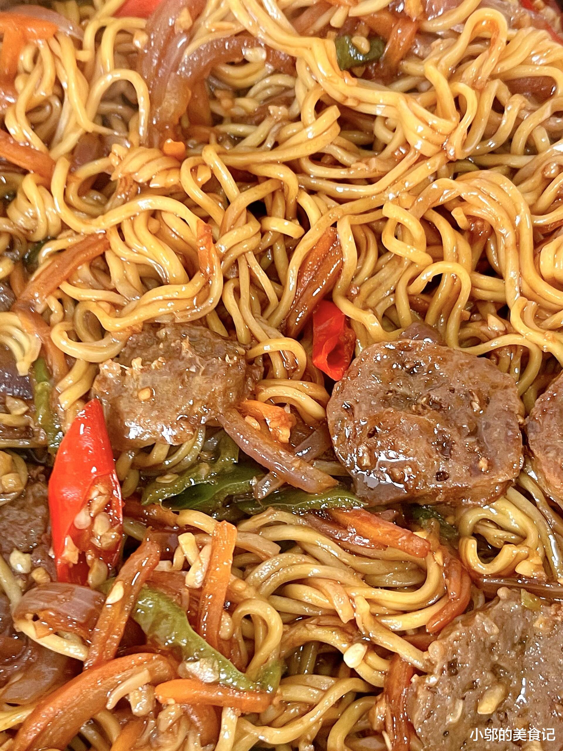 牛肉丸炒面:一碗碳水与肉香的极致碰撞。今天吃牛肉丸炒面,真心好吃!面条吸饱了酱汁,每一根都裹着浓郁的肉香,牛肉丸Q弹爆汁,配上胡萝卜、青椒的爽脆,一口下去,满足感直接拉满。这道菜做法简单,食材家常,却能做出让人惊艳的味道,绝对是家里冰箱有存货时就能搞定的“神仙料理”。