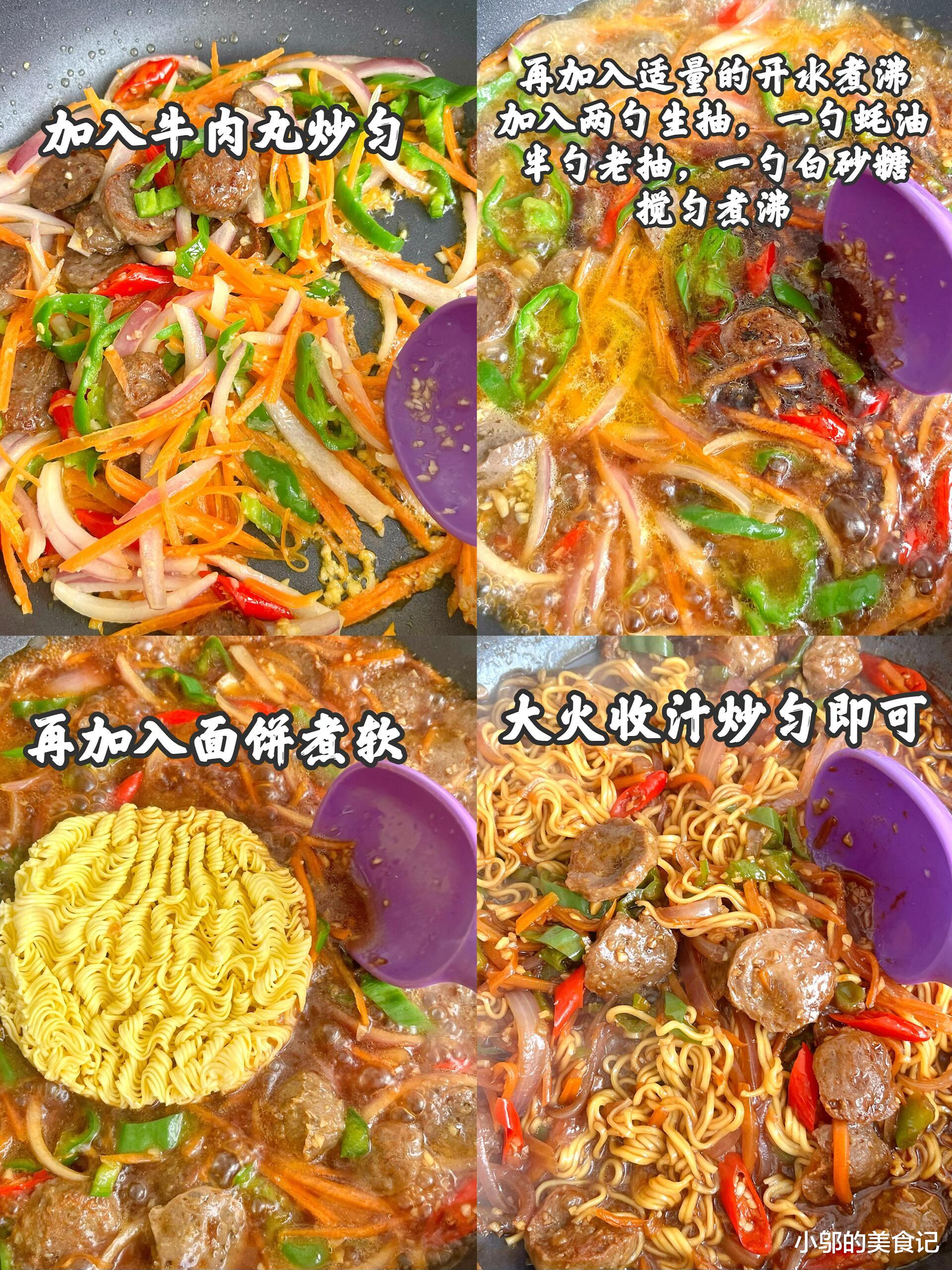 今天吃牛肉丸炒面,真心好吃!面条吸饱了酱汁,每一根都裹着浓郁的肉香,牛肉丸Q弹爆汁,配上胡萝卜、青椒的爽脆,一口下去,满足感直接拉满。这道菜做法简单,食材家常,却能做出让人惊艳的味道,绝对是家里冰箱有存货时就能搞定的“神仙料理”。