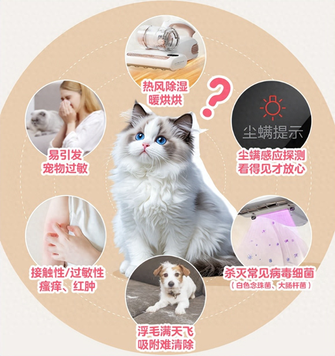 Ⅰ:产品核心优势在于高频拍打技术,每分钟可实现约10,500次强力拍打,有效震出床褥、沙发等织物深层的螨虫及排泄物。
