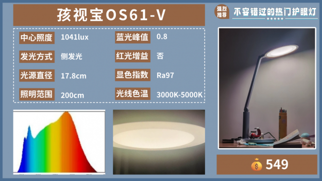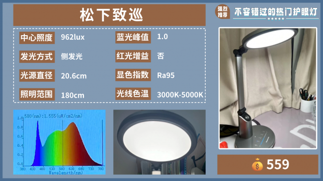 推荐理由:底盘上有专门的学习模式,可以把光线自动调整到适合学习的光线。