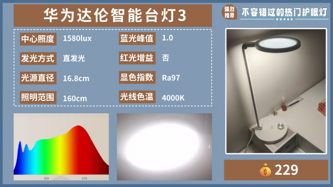 推荐理由:它的色温范围比较广3900K-4600K,可以根据需求调节色温。