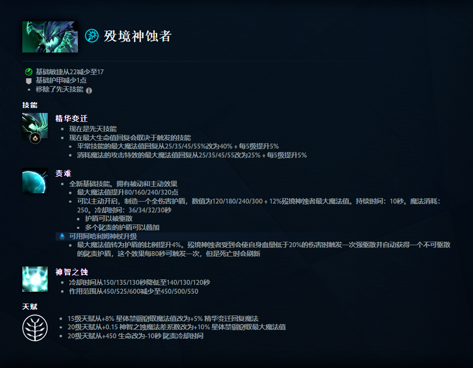 殁境神蚀者“精华变迁”成先天技能,获新基础技能“责难”。