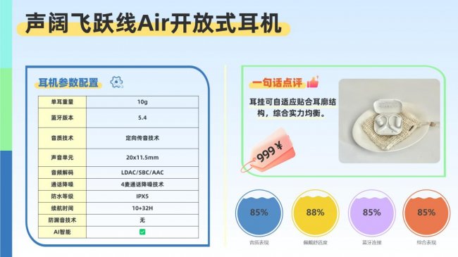 另外这耳机还内置讯飞、DeepSeek等多模态AI技术,支持实时翻译、智能对话、信息搜索、内容创作等数十项功能,让耳机不仅是音质巅峰的代表,更是智能时代的随身全能助手,真正实现开放式耳机全新体验。